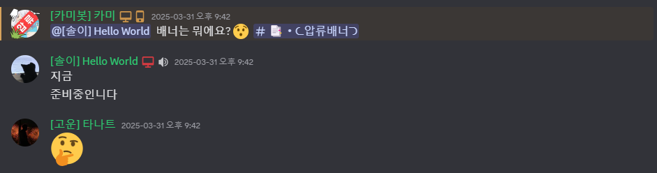다행이 개발자분이 10시에 학원 끝나고 빨리 처리해주셔서 웹사이트는 정상적으로 배포를 완료해냈고, 배너도 빠르게 만들어 봇들별로 배포해드렸습니다. 12시에 다함께 서버 음성방에 모여서 서로 봇 프로필 사진을 수정하고 간단한 수다를 조금 떨었습니다. 유명봇들 개발자분들이랑 이번 기회로 간단하게라도 연락을 해보게 되서 영광이고 즐거웠습니다.